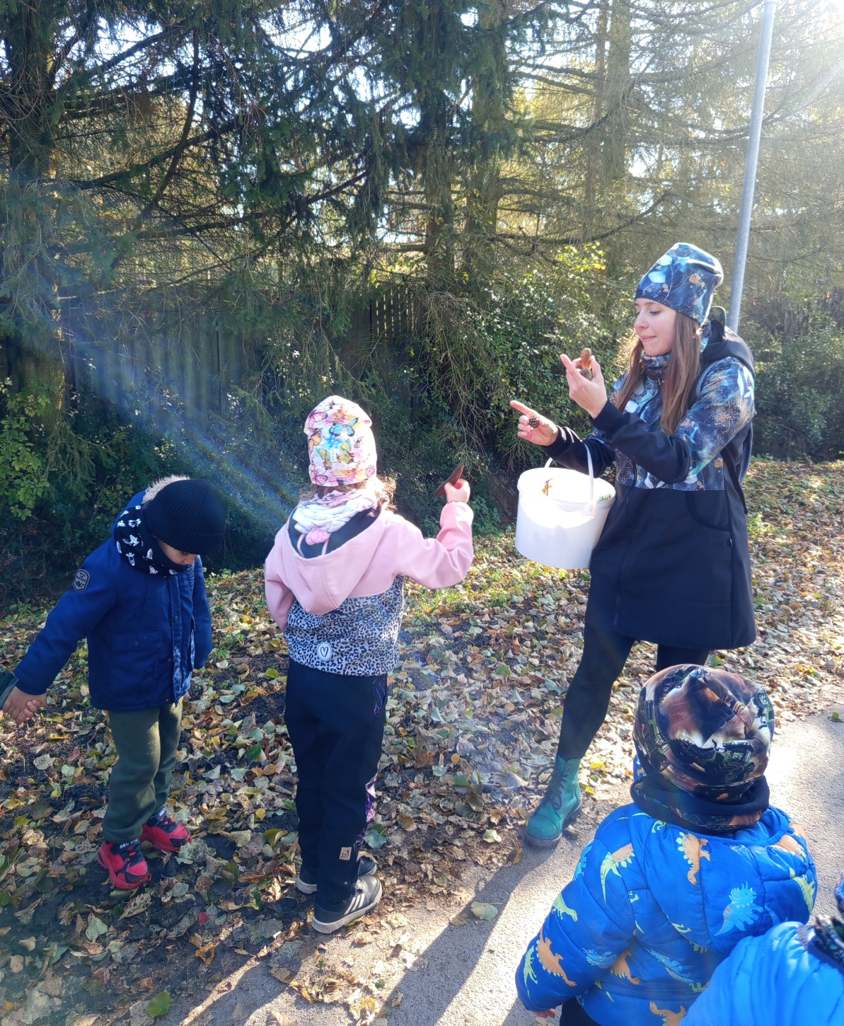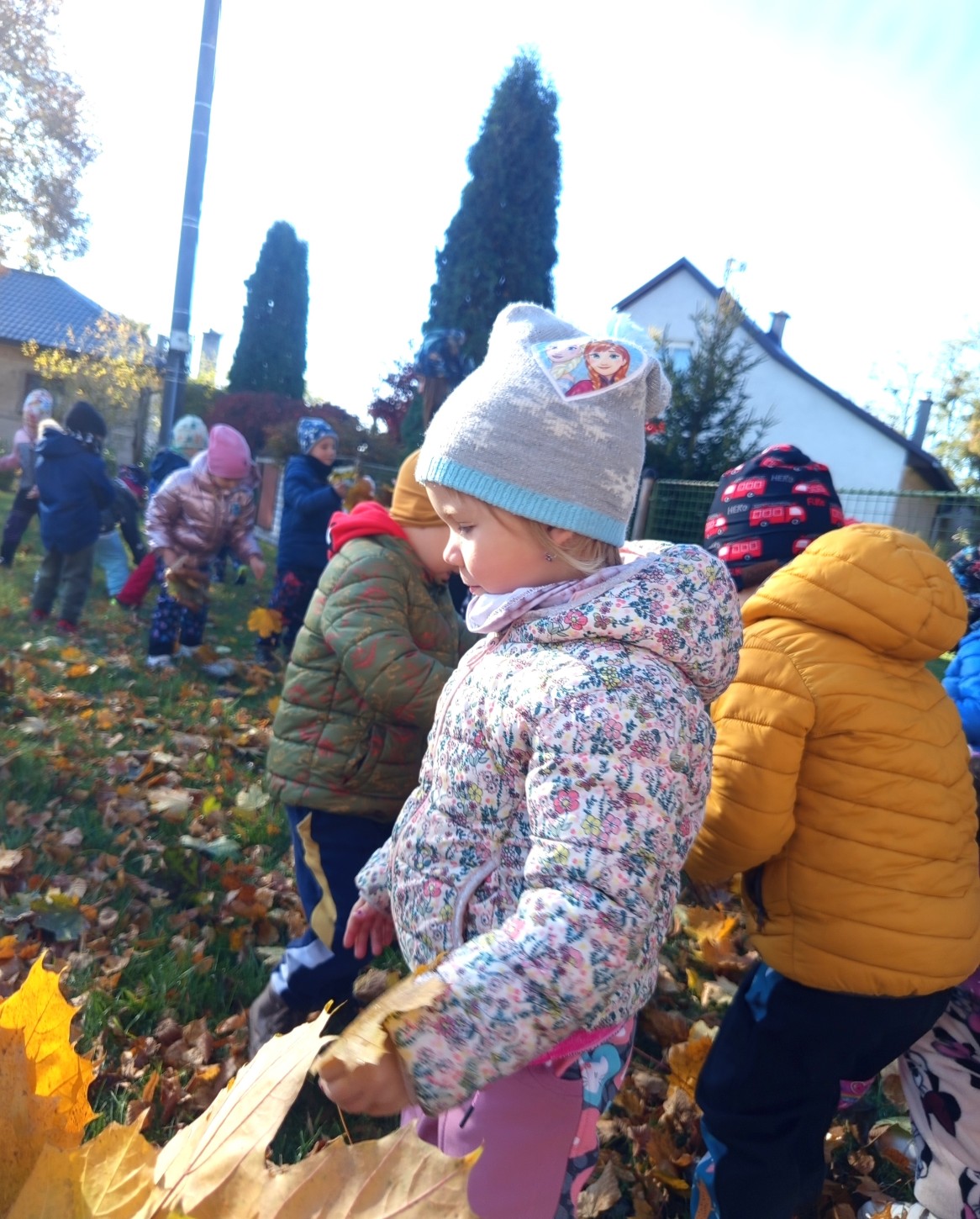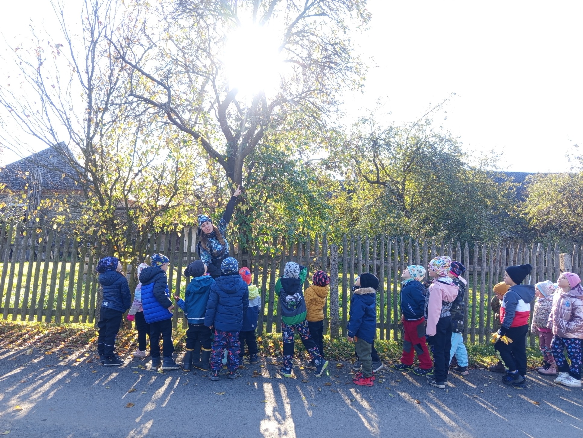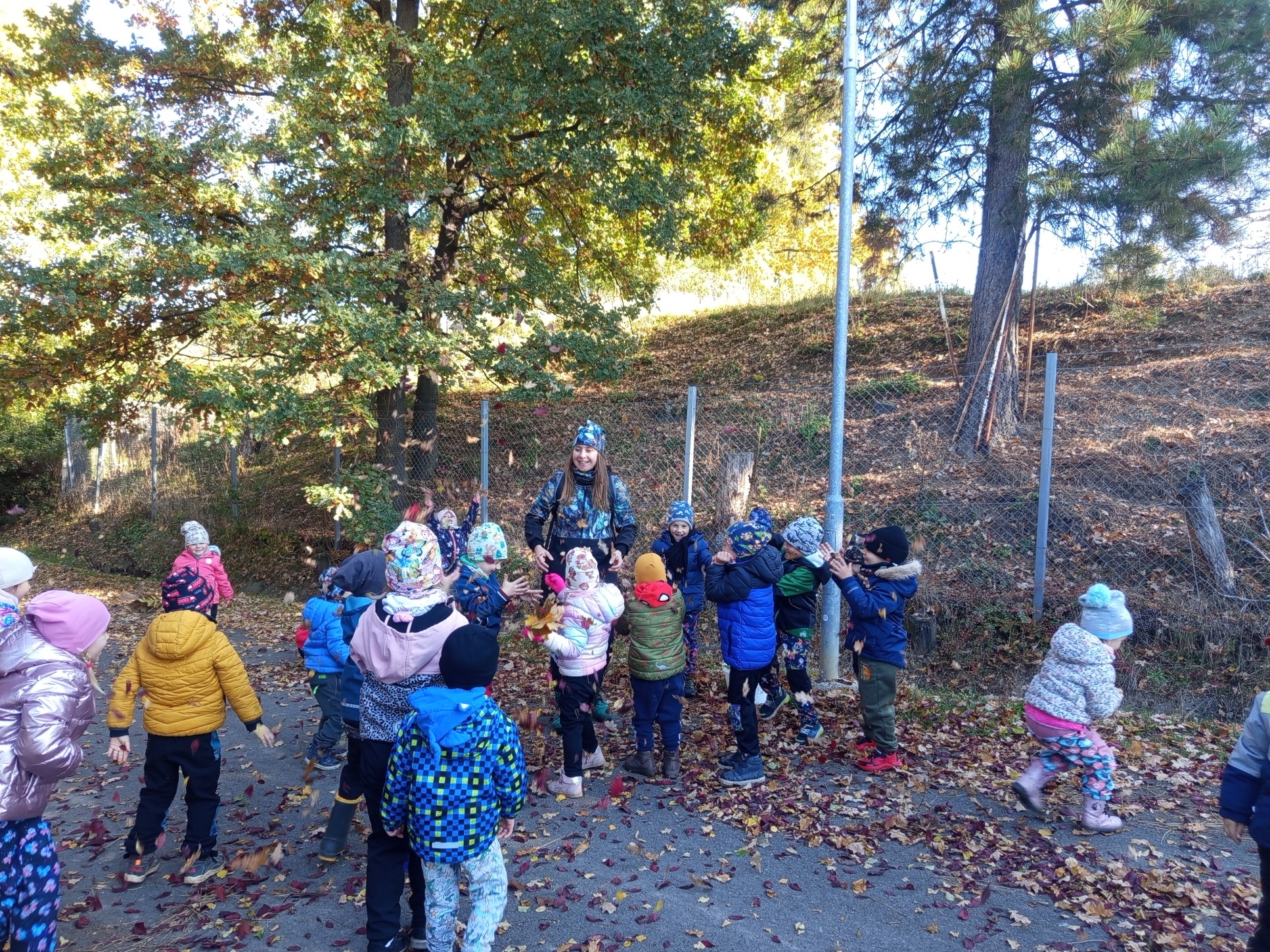 20. října slaví všechny stromy svůj svátek a tak jsme se vydali do okolí všem stromům popřát vše nejlepší. Děti poznávaly rozdíl mezi jehličnatými a listnatými stromy, ukázali jsme si některé plody - ořechy, kaštany, jablka nebo zkoušeli rozeznávat šišky a listy. Pozdravit nás dokonce přišla veverka Nutelka, kterou jsme už nějaký čas neviděli. Vše co jsme po cestě nasbírali jsme s sebou vzali do školky a ještě jednou si vše zopakovali formou hry. Za správné odpovědi dostávaly děti kolíčky. A kdo se nám jeví jako největší znalec všech stromů v okolí? Náš Jindříšek, kterému patřila velká gratulace a také potlesk od všech kamarádů.