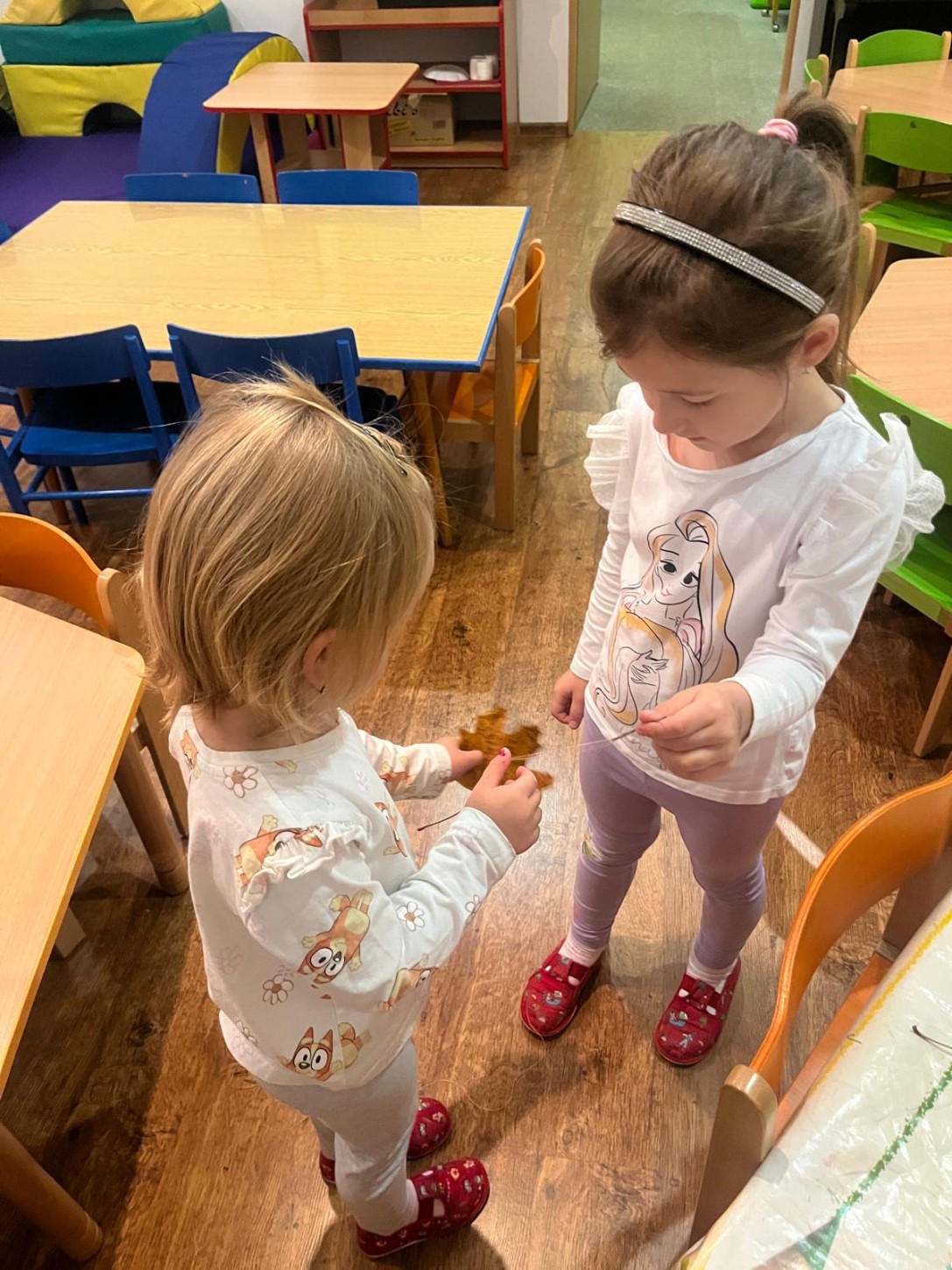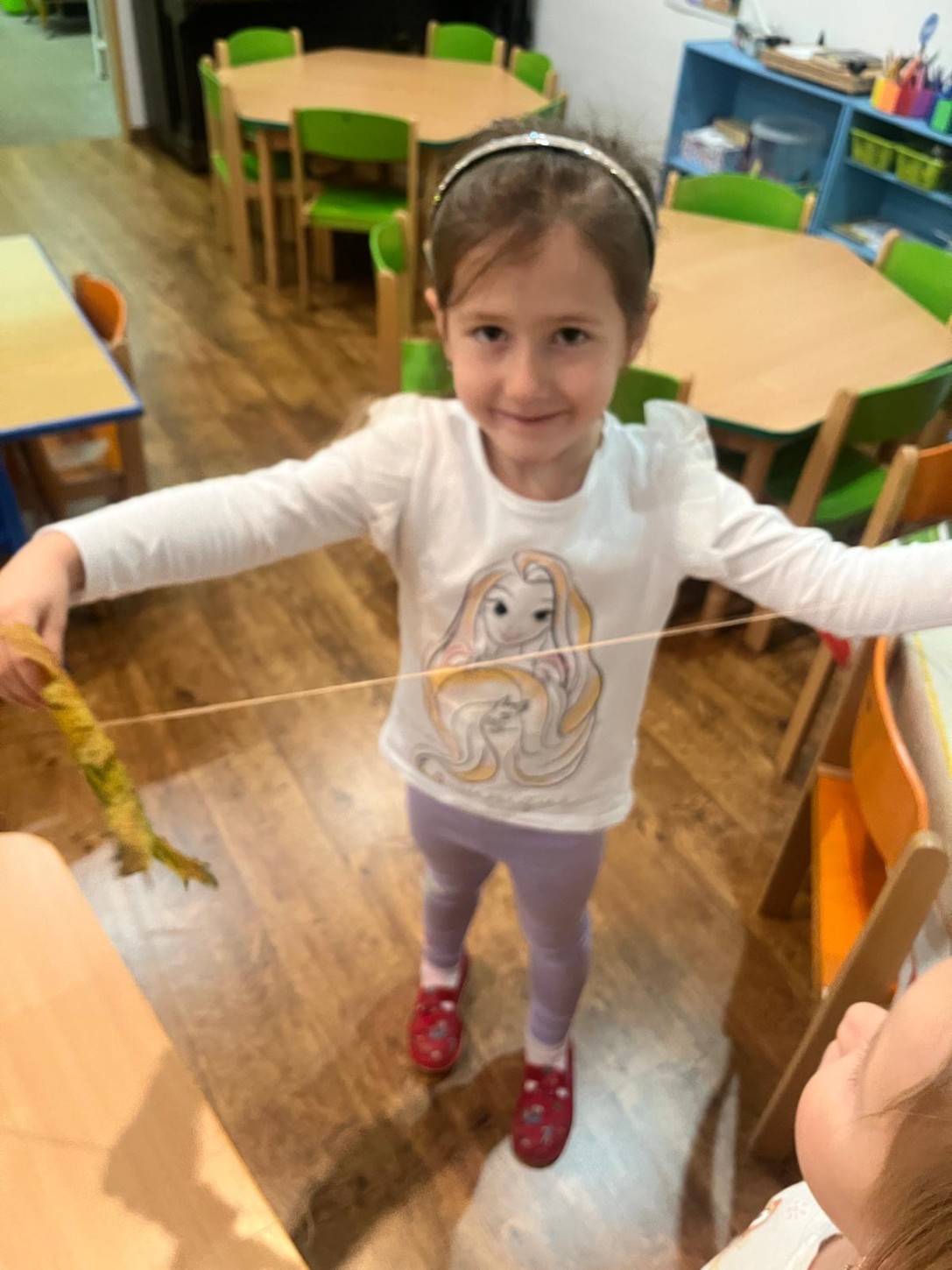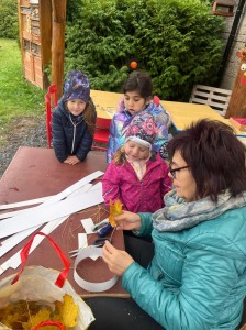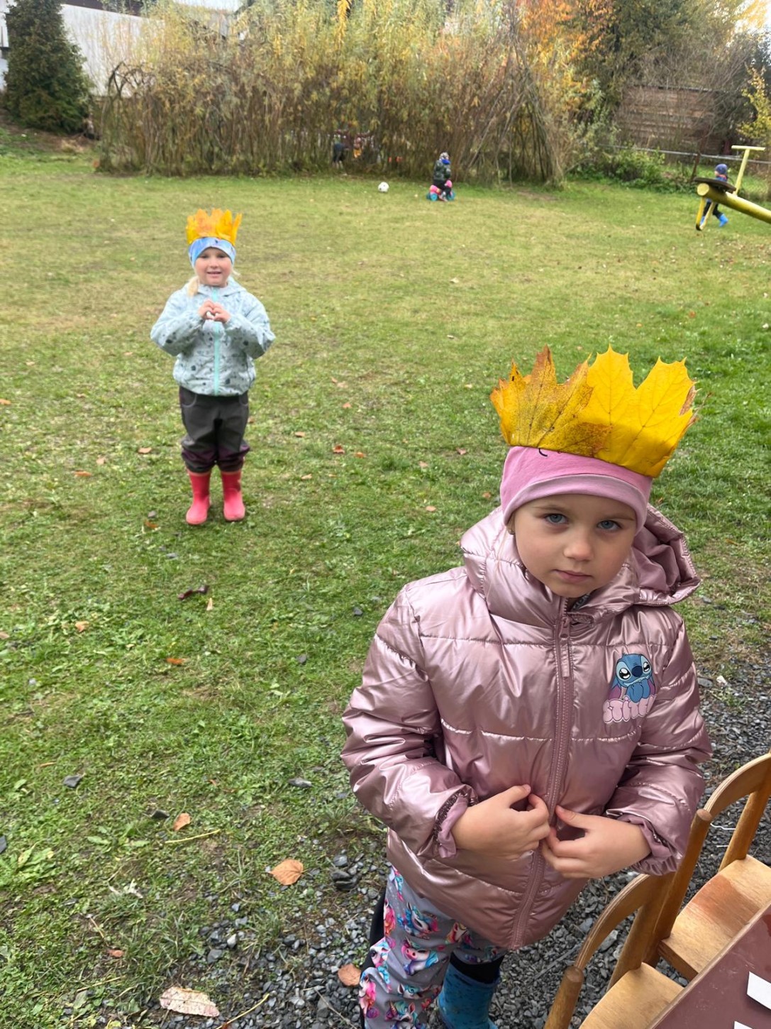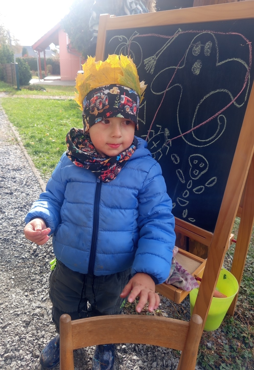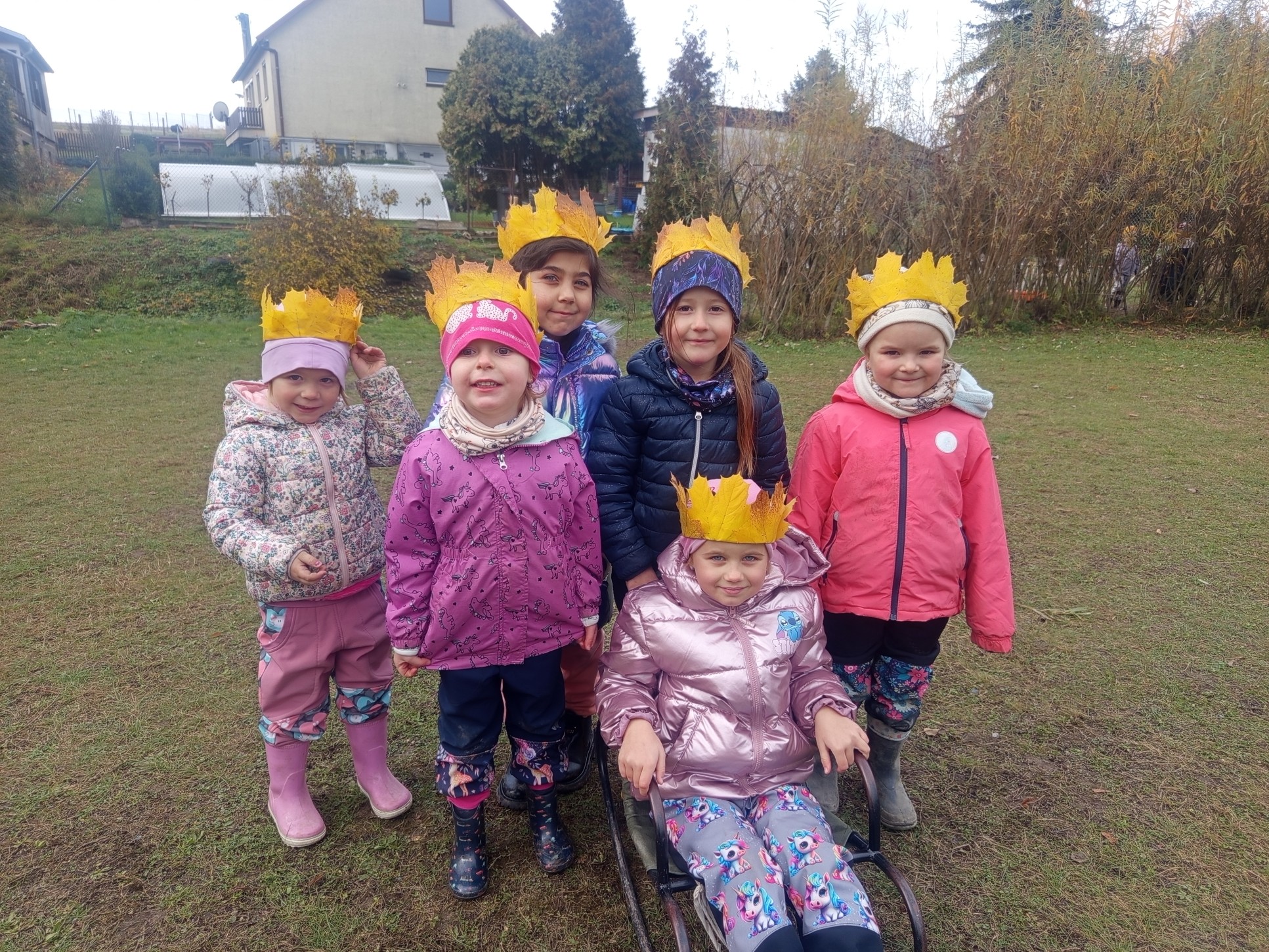 S nasbíraného listé poté děti vytvořily stylovou dekoraci do třídy v podobě listové housenky a také něco na sebe - královské koruny z javorových listů.