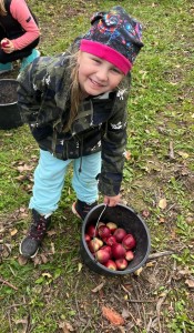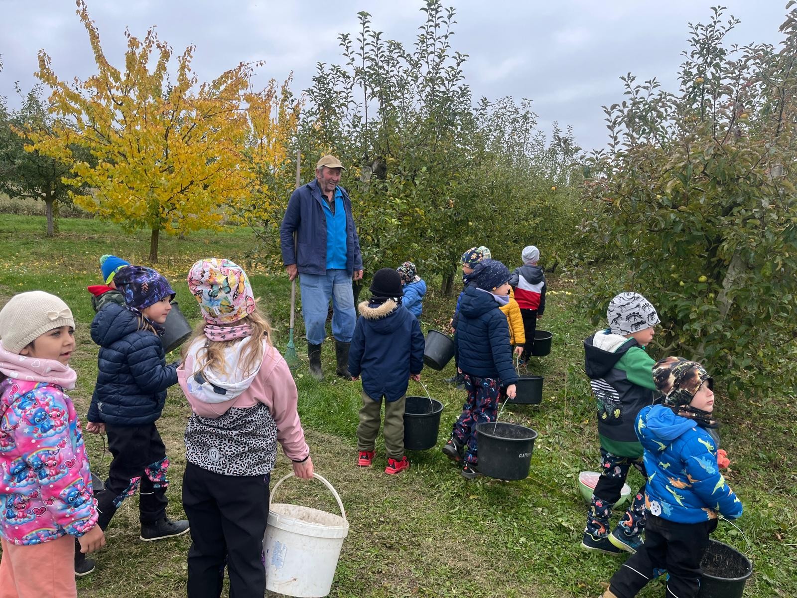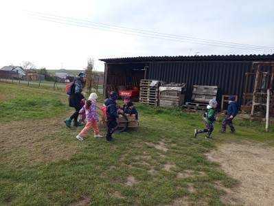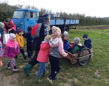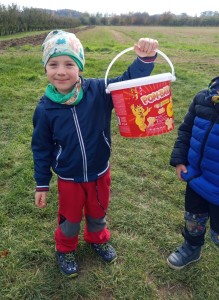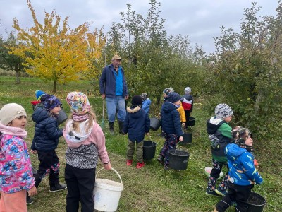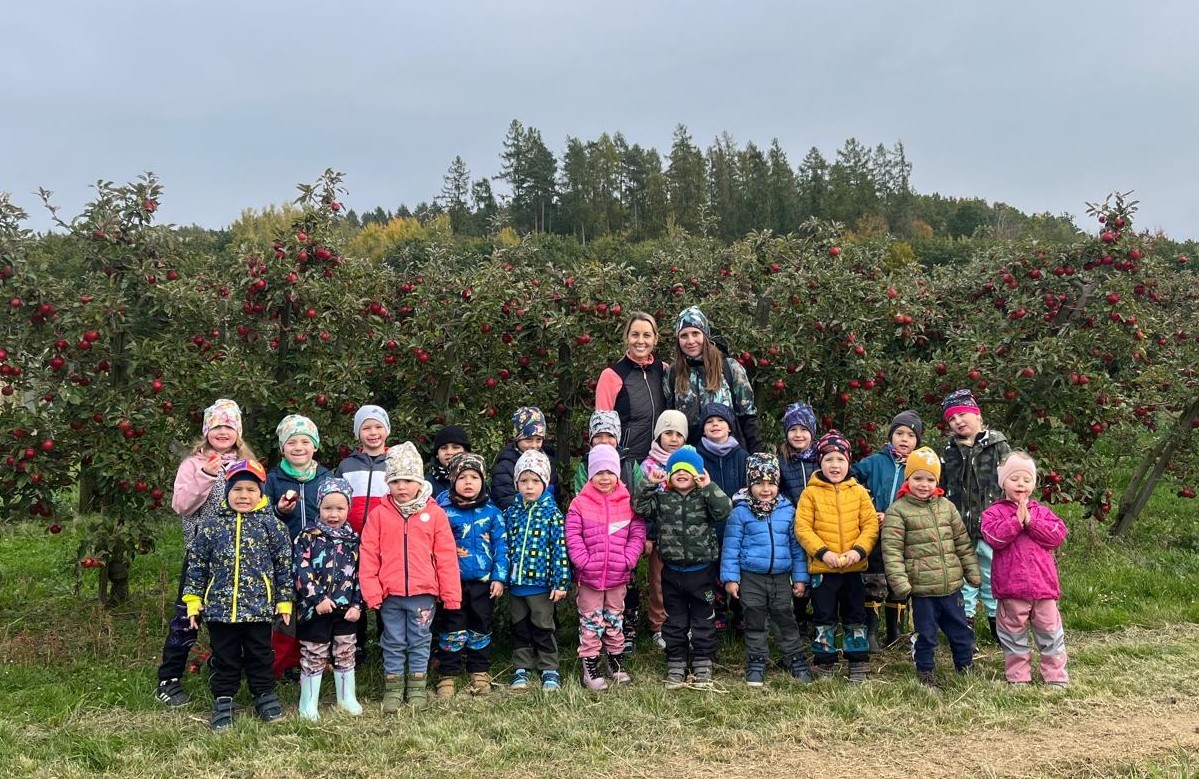 Ve středu jsme dostali pozvánku od rodiny Šemberů do jejich ovocných sadů. Děti pomohly se sběrem popadaných jablíček - hezká do bedýnky a škaredá do kyblíku. Počasí nám přálo a za tuto malou pomoc se děti povozily v kárce a s sebou dostaly jablíček kolik unesly. A my už přesně víme co s nimi uděláme!