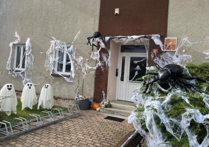 Pozvolna se blíží konec října a to pro nás v mateřské škole znamená jediné - Halloween. Jako každý rok tak i letos se těšíme na tuto akci s dětmi. Začínáme „z lehounka", aby se děti zbytečně neděsily. První etapou je venkovní výdoba s naší velkou chloubou - strašidelným zvonkem, magickým okem, kterému nic a nikdo neunikne! Vchod školky hlídají také dva pavouci Magda s Adélkou a zapomenout nemůžeme ani na tři postavy duchů. Ti jména nemají, ale nebojte se - všichno to jsou dobré duše. V druhé etapě přichystáme vnitřní prostory a poté už se nemůžeme dočkat samotné oslavy Halloweenu v maskách a všemu co k tomuto dni patří.