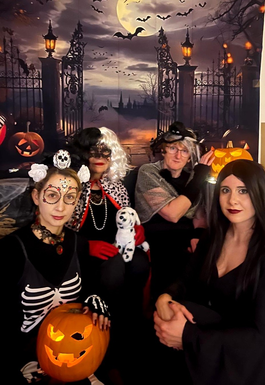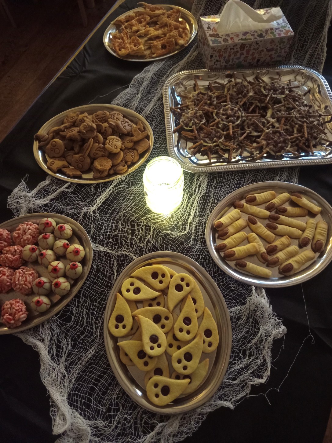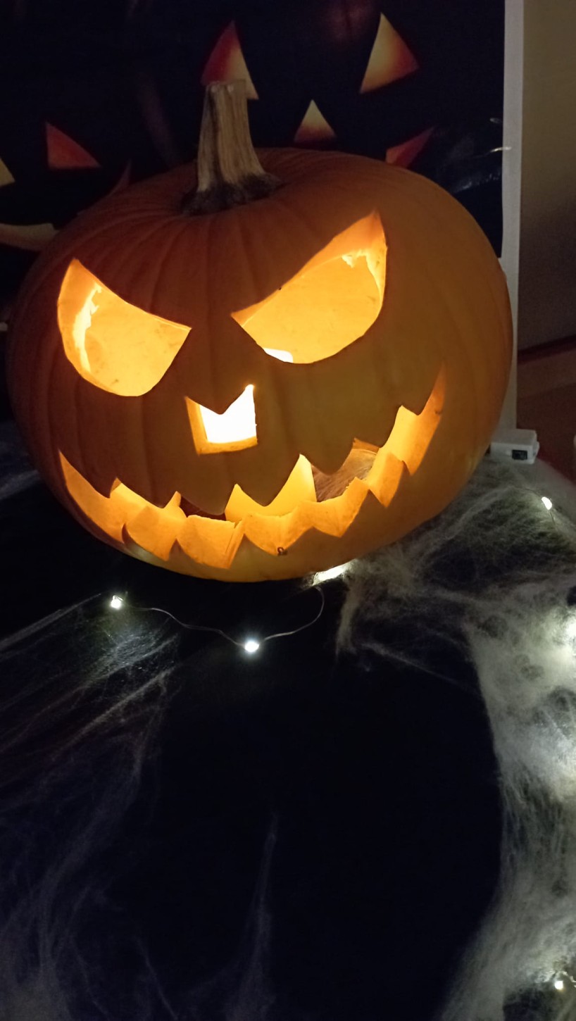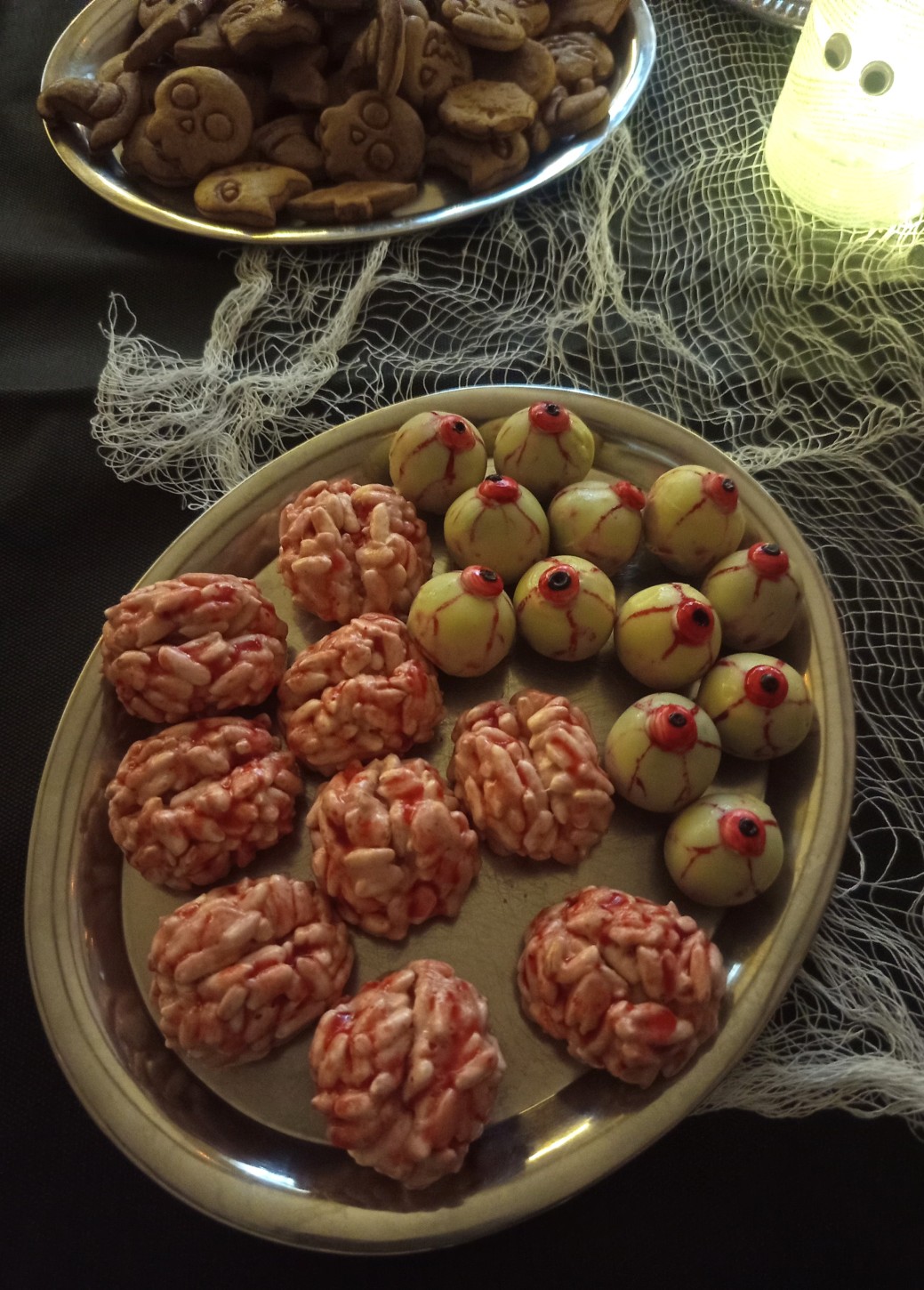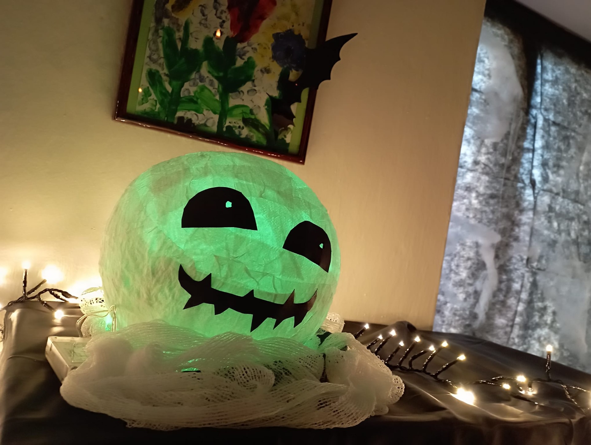 Halloween to je především tajemno a trochu strašidelno. Jsou to dýně, svíčky, pavouci s jejich všudepřítomnými sítěmi a další různé magické věci. To vše bylo na tento den pro dětičky připraveno! Dohodli jsme se s nimi, že od samého rána budou to třídy přicházet již v přestrojení a byla to panečku přehlídka všech možných postav. Ve dveřích se nám objevovali: kostlivci, čarodějnice, kouzelníci, netopýři, duchové a dokonce jsme tu měli i Ninju. Bylo znát, že si na maskách dali v tento den všichni záležet a to včetně paní učitelek i paní Chmelářové. Ráno děti využily připravený fotokoutek, kde se nechaly zvěčnit na památku. Poté jsme hráli různé tématické hry, tancovali, zpívali a také zkusili jeden pokus s čajovými sáčky. Po těchto aktivitách logicky vyhládne, takže jsme se pustili do nachystaného halloweenského rautu. Podávali se mozečky, perníkové mumie, duchové, pavučiny, prsty od čarodějnice, tématické perníčky a největší delikatesou byly oční bulvy - recept k dostání u paní učitelky Toroni :) A co na to říkaly děti? Vůbec se toho nezalekly a s chutí se do toho nevšedního občerstvení pustily.