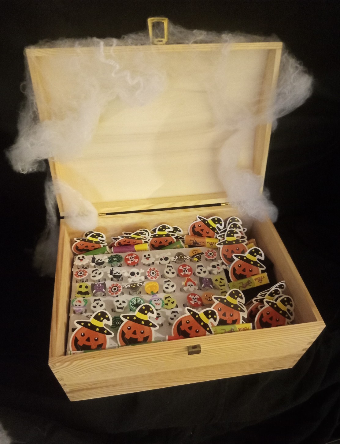 Jako dáreček a zároveň památku na tento den si naše/vaše malá strašidla odnesly svítící prstýnek s malou sladkostí.