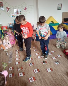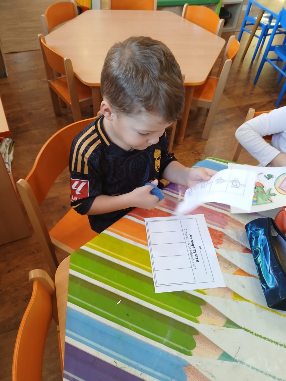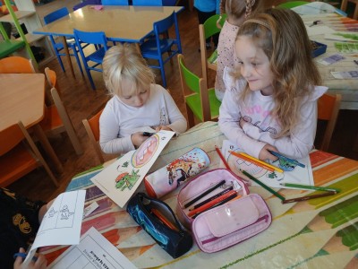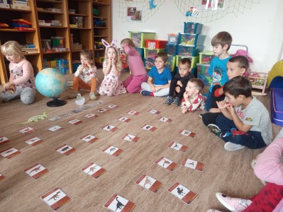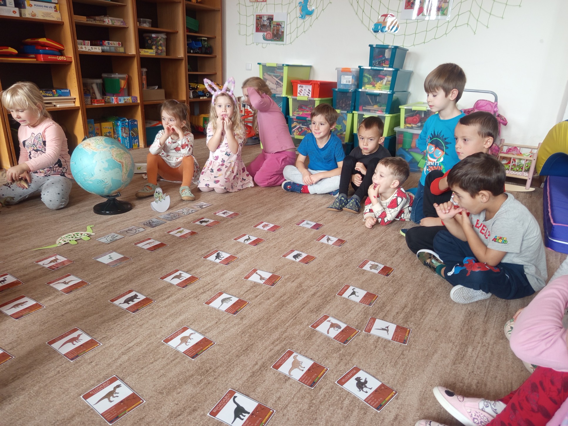 V tento den si děti ve volných chvilkách mohly vystřihnout vlastního dinosaura nebo si s paní učitelkou Danou zahrát dinosauří „poznávačku".
