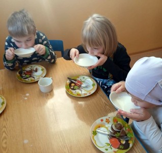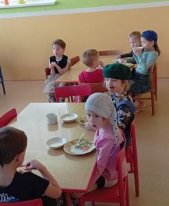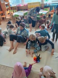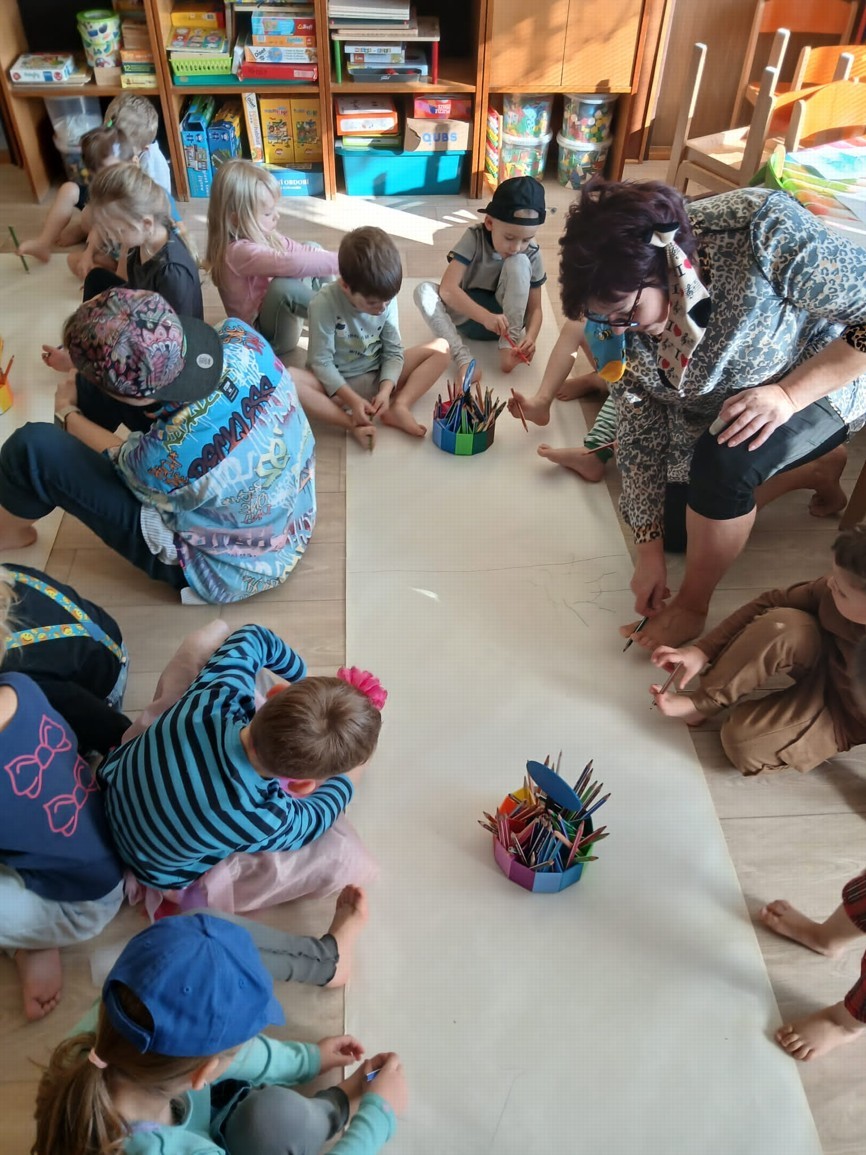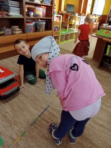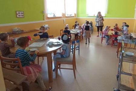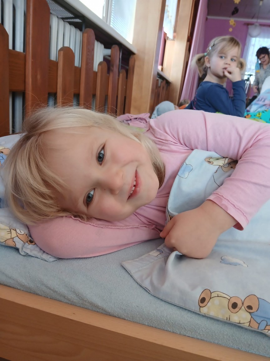 Den naruby byl plný radosti a smíchu. Děti i paní učitelky přišly tématicky oblečení - dívky za chlapce, chlapci za dívky, oblečení naruby, každá ponožka jiná a další kreativní nápady. A nešlo jen o oblečení, ale vše na co jsme zvyklí dělat tak nějak rutinně a podle pravidel bylo najednou naopak! Ráno jsme se vítali dobrý večer, jako přivítání s paní učtelkou jsme si zatancovali bláznivý taneček, do jídelny jsme celou cestu couvali a v samotné jídelně nás čekala spousta malých překvapení. Židličky byly otočené, mléko děti dostaly do misek a svačinu si snědly z talířků na polévku. Některé děti seděly na místě, kde svačí paní učitelky a ty se naopak krčily u stolečku pro naše nejmenší. Po svačince jsme si ve třídě sedli do kroužku a každý nám na sebe prozradil co má na sobě jinak. Poté jsme si zacvičili popletenou rozcvičku a po této námaze jsme se přesunuli na lehátka... a tam začala pravá polštářová bitva, kterou naše školka určitě nepamatuje!
