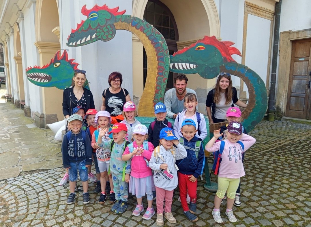 5. června jsme se vydali na výlet do nedalekého Úsova. Tam na nás čekalo divadelní představení Bajaja, které se odehrávalo na historickém nádvoří zámku Úsov. Celou pohádkou nás provázel šašek, kterého si děti oblíbily téměř okamžitě a to díky svým vtípkům. Představení se dětem moc líbilo - nejvíce asi živý koník Ombré, který si zahrál spolu s ostaními herci jednu z hlavních rolí. Po pohádce děti čekaly stanoviště s řemeslnými úkoly a hádankami. Počasí nám celý den opravdu přálo a tak jsme se rozhodli, že do Klopiny to dojdeme po vlastních nohou. Děti to zvládly na jedničku a tak je u školky čekalo malé překvapení – nanuky, které v tomto parném počasí jistě potěšily.
