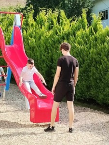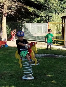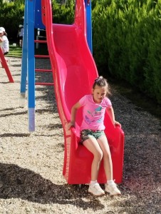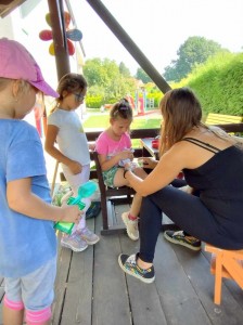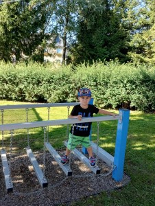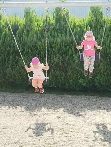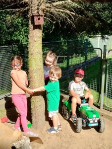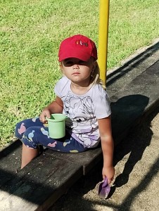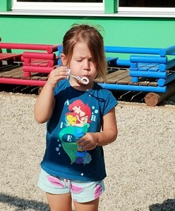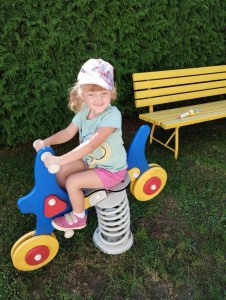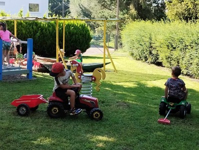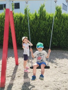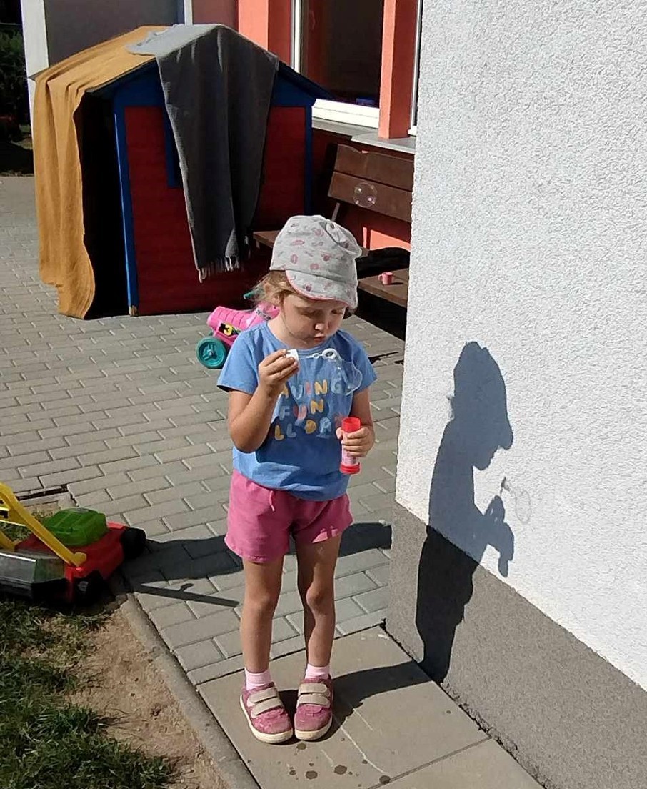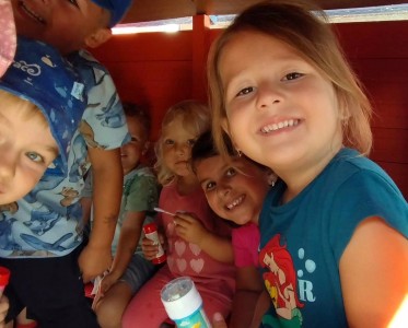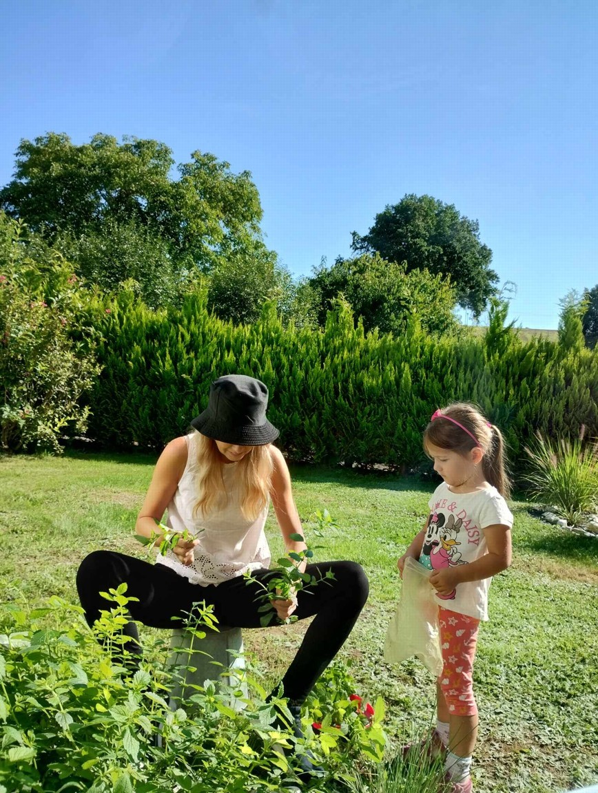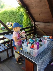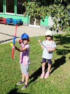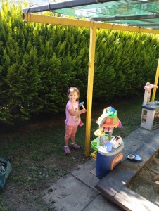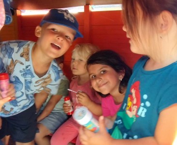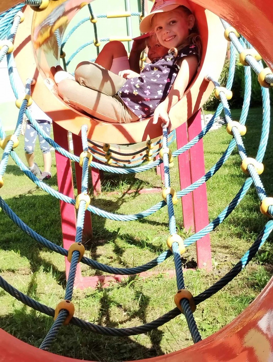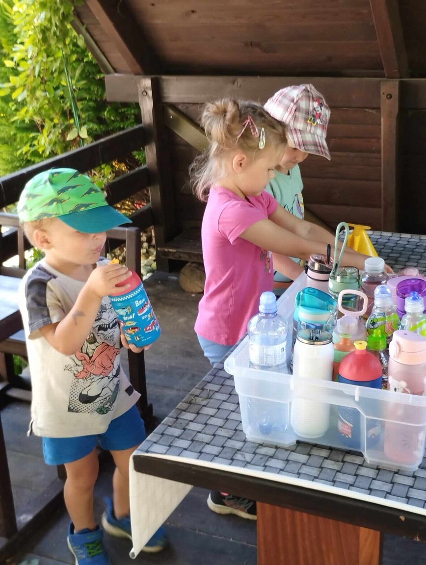 Máme nádherné počasí. Sluníčko krásně hřeje a nám je na zahrádce moc dobře. Hrajeme si, sportujeme, sklízíme plody z naší zeleninové a bylinkové zahrádky.
