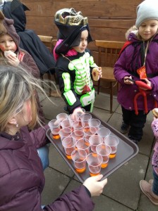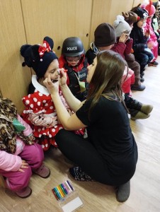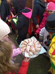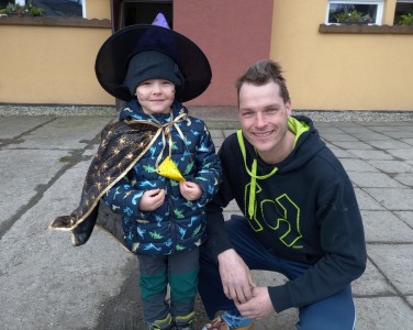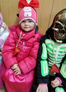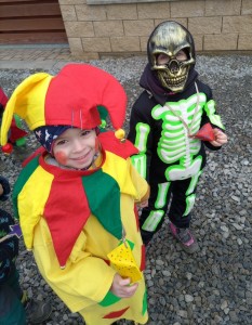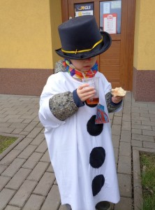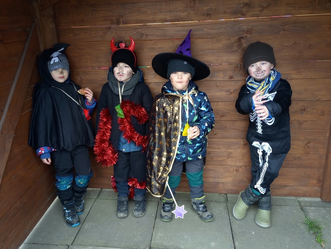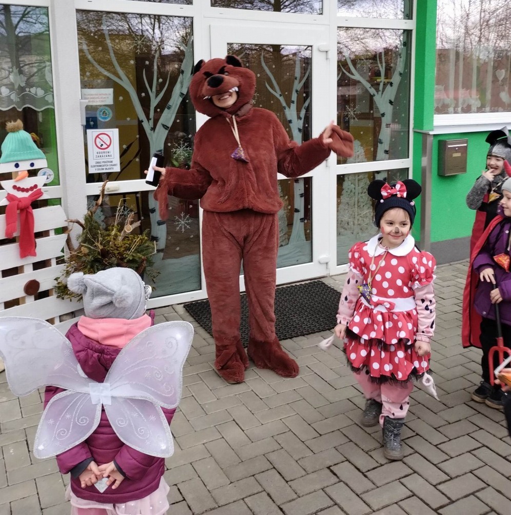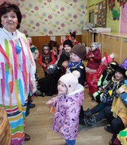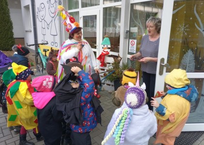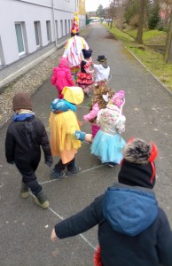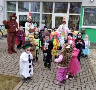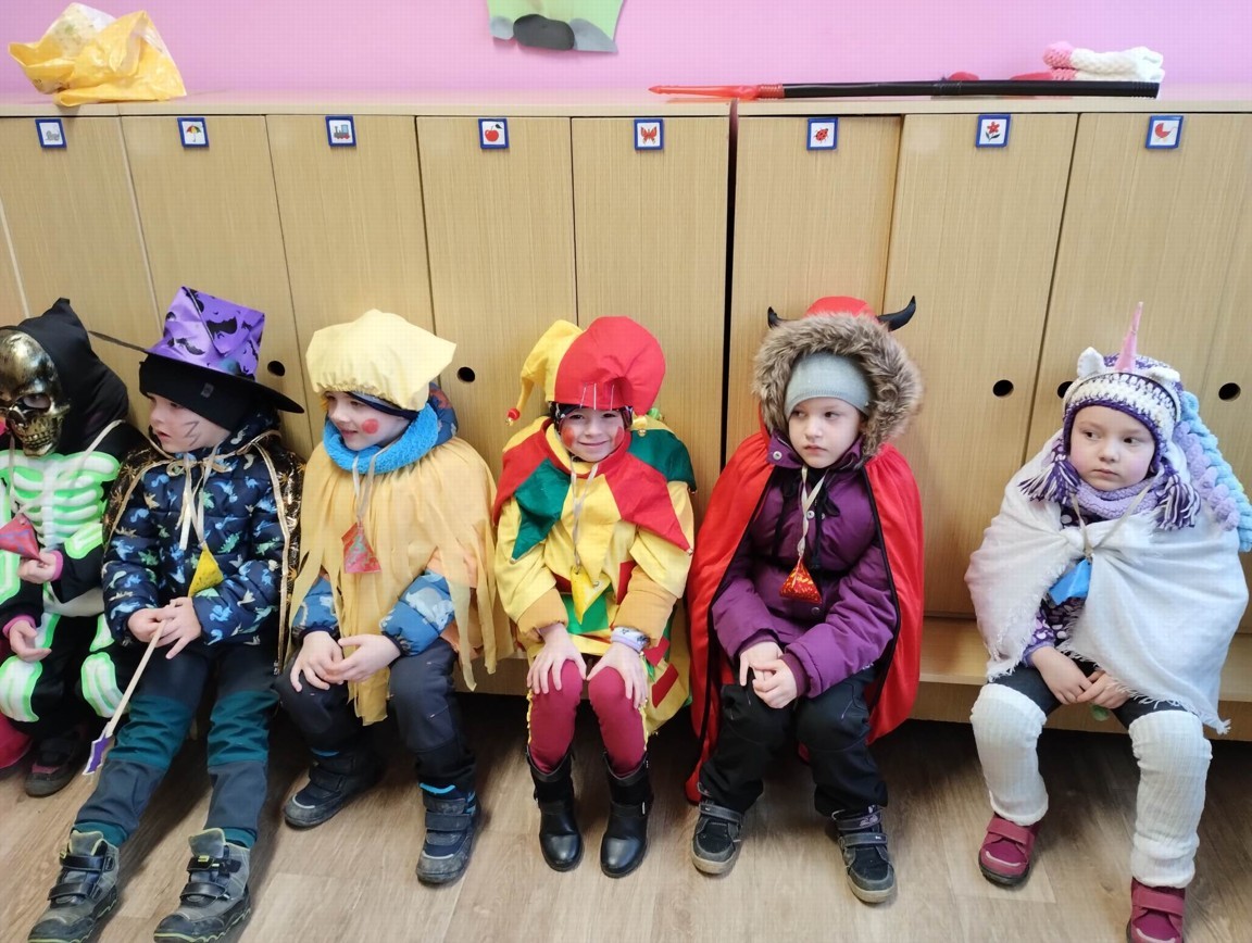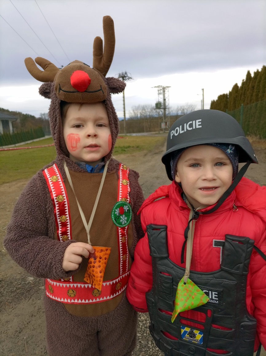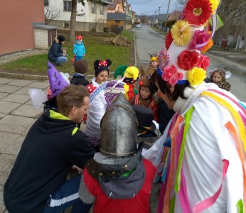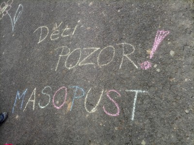 Tak jsme si poprve ve školce vyzkoušeli masopustní průvod vesnicí.Jelikož je naše vesnička dlouhá a naše nožičky krátké, rozplánovali jsme si tuhle veselici na dva dny. První den jsme se vydali na dolní konec Klopiny. Snad se nám podařilo několik lidiček rozveselit písničkami, říkankami i tanečky. A veselo bylo. Zpívali jsme, tančili, chrastili šterchadly, mávali na všechny kolemjdoucí i jedoucí. Cestou jsme plnili i jednoducké úkoly. Např. chůze po klikatých cestičkách, zahráli jsme si hru na masopust, házeli jsme jitrnicemi...Děkujeme všem za milé úsměvy i dobrůtky, které jsme obdrželi. Máme je ve školce a občas si smlsneme. Hlavním naším cílem bylo vykouzlit všem úsměv na tváři, rozveselit naši vesnici, připomenout tradici Masopustu. Děkujeme za občerstvení u obchůdku "U Klinků". Koblížky byly vynikající a teplý čaj také přišel vhod. Vrátili jsme se do školky unaveni, ale nadmíru spokojeni.