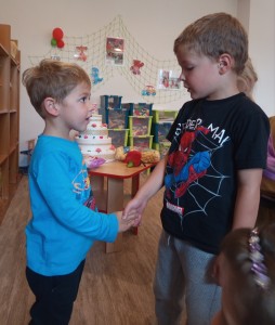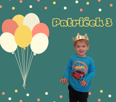 Patriček měl dnes ve školce svou první oslavu narozenin. Slavil 3 roky a celou oslavu zvládl na jedničku! Aby také ne, když mu pomáhala a radila jeho starší a zkušenější ségra Terezka. Všichni kamarádi si pro něj připravili krásná přáníčka a my se k nim Patričku taky přidáváme - přejeme ti hlavně zdraví, štěstí a plno prima kamarádů kolem sebe.