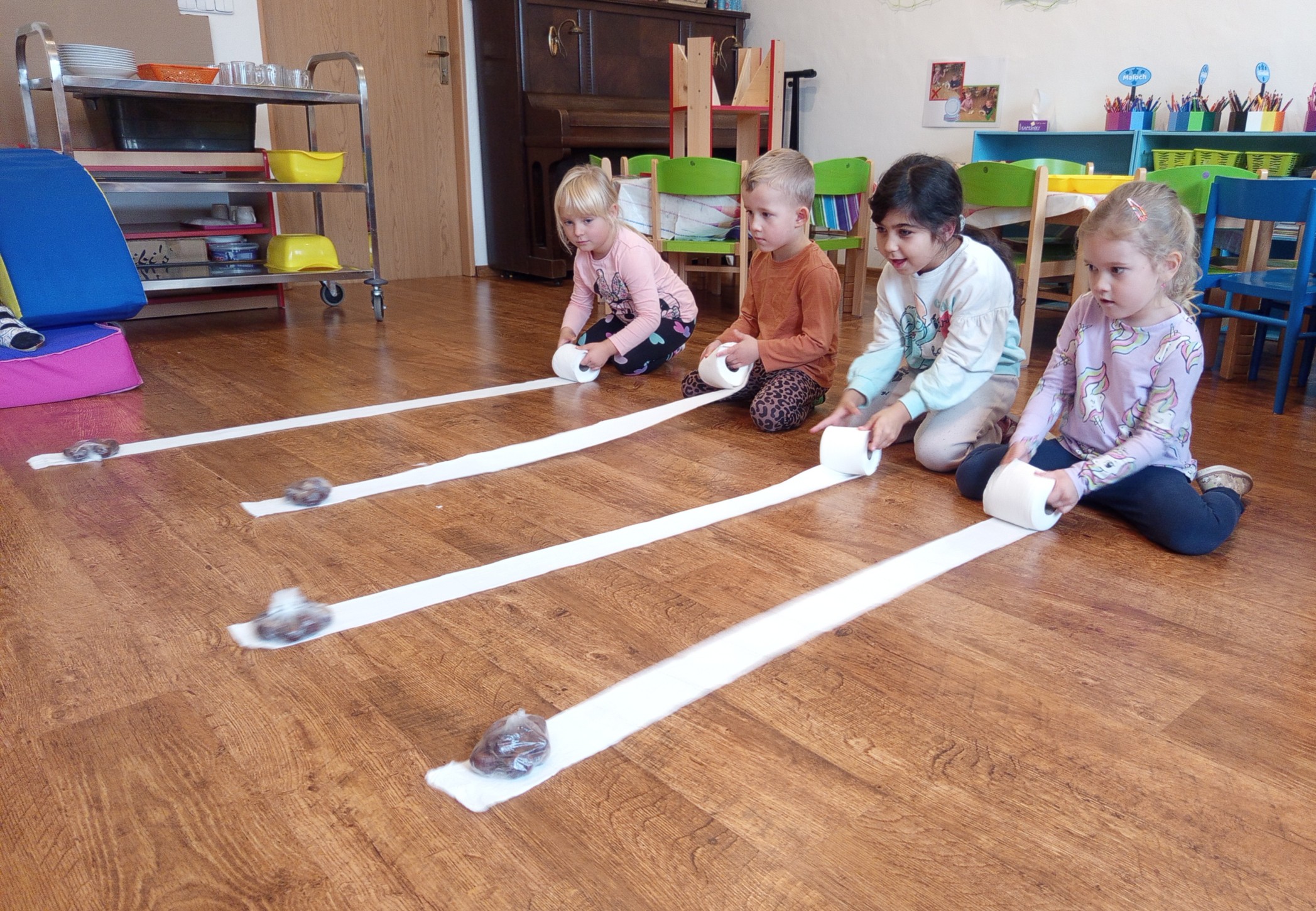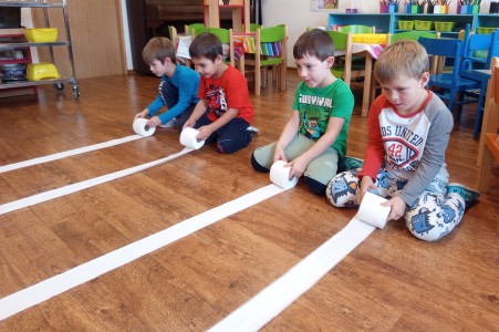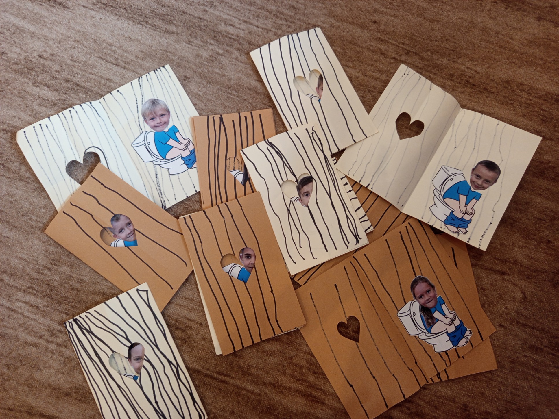 Víte, že i záchody mají svůj den? Je to tak - 19. listopad je Světovým dnem toalet. S dětmi jsme si povídali jaké by to bylo, kdybychom neměli možnost mít záchod tak jak ho známe nebo kdyby nebyl vynalezený například toaletní papír. Na obrázcích jsme si také ukázali, že existují různé druhy toalet. Zatancovali jsme si zábavný tanec: „Vezmi papír - utři zadek - spláchni - spláchni." Nesměly chybět ani hry s touto témetikou a jako dáreček si domů děti mohly odnést výtvor v podobě legrační „kadibudky."