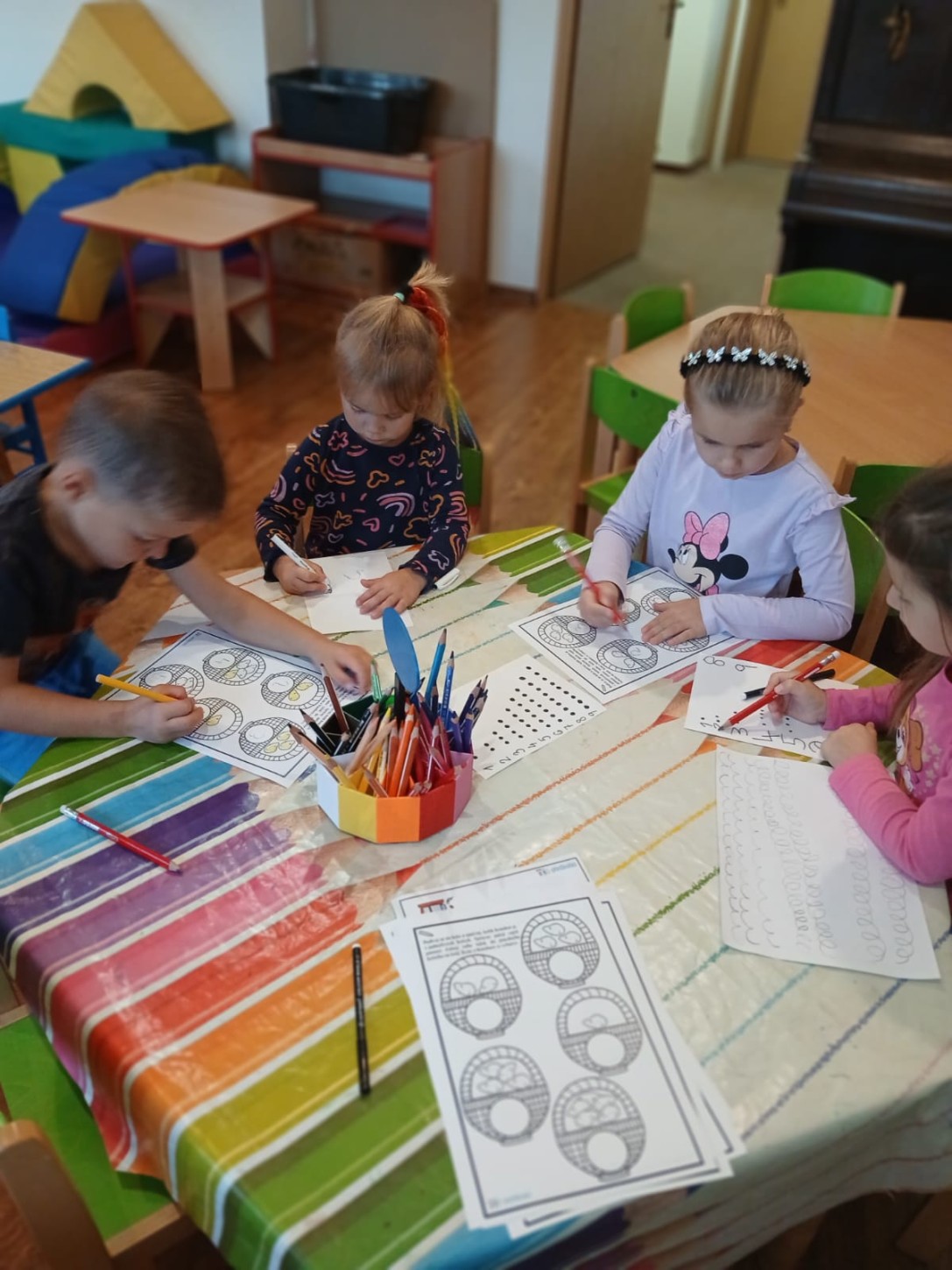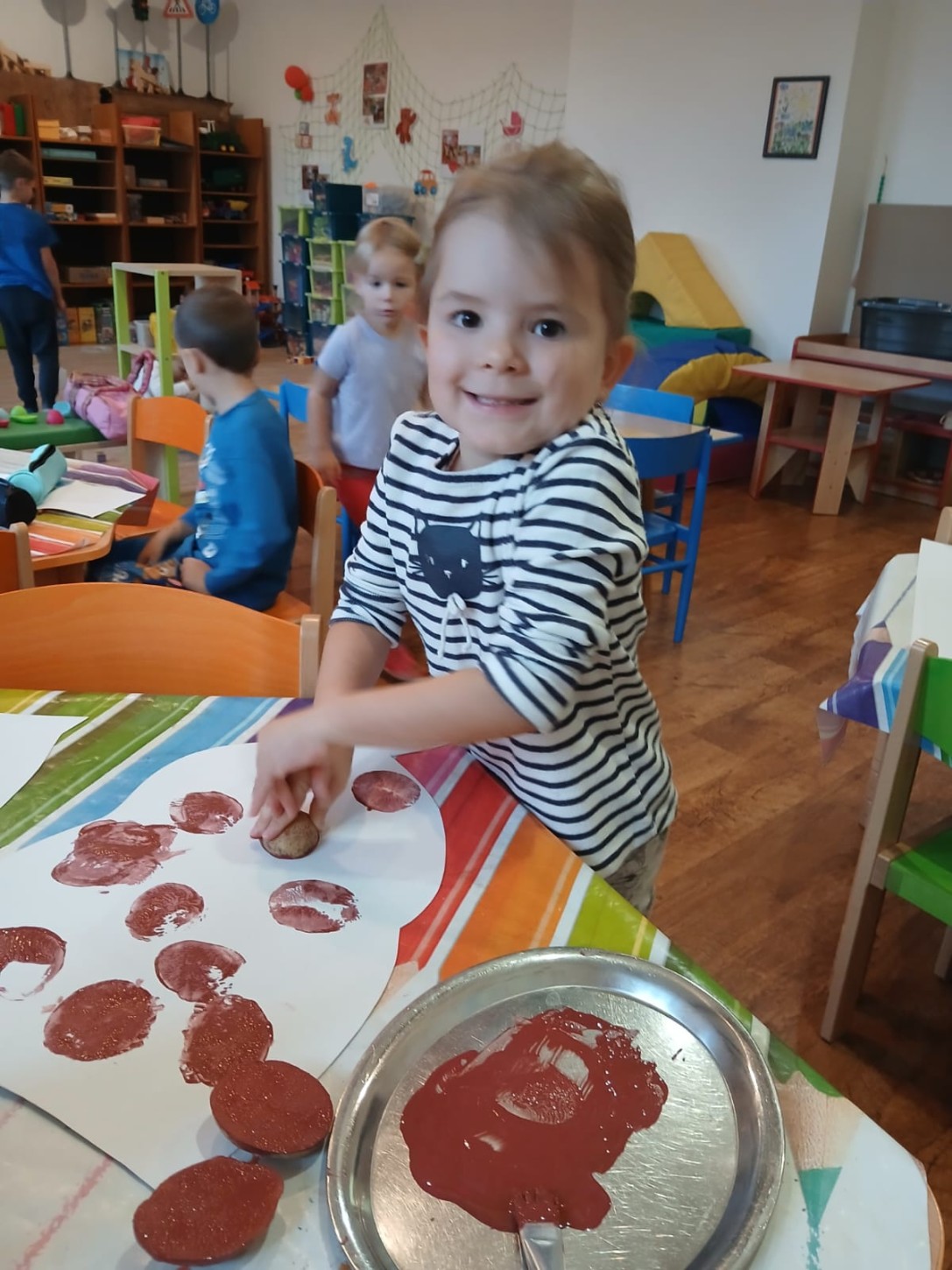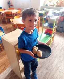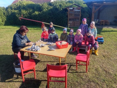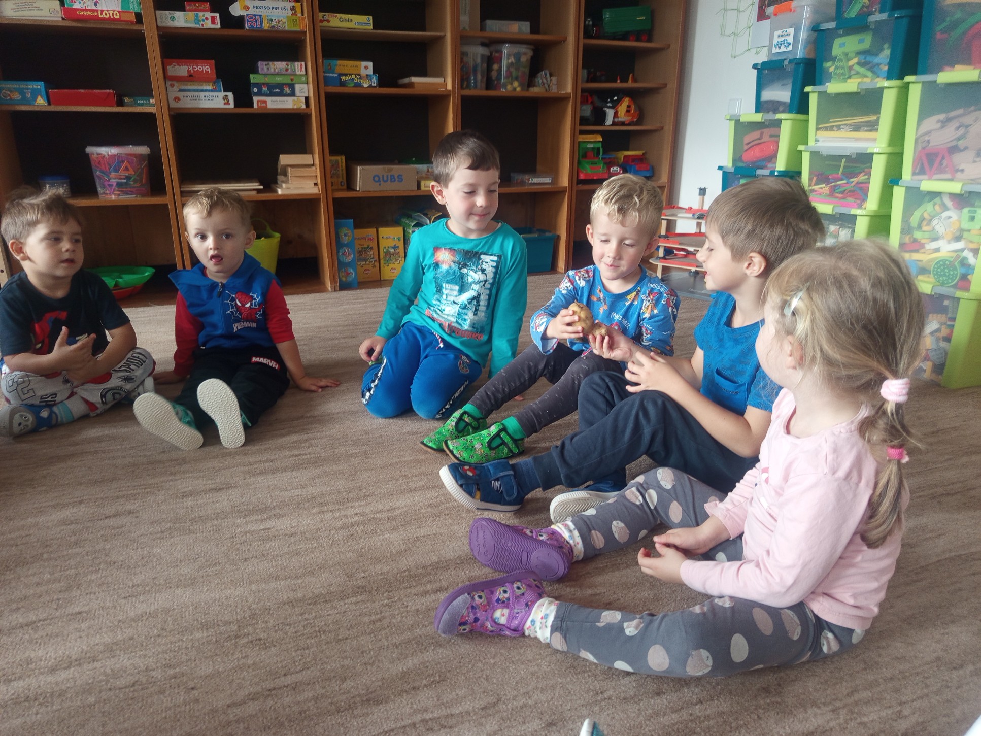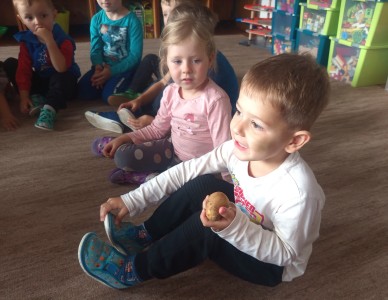 Brambory – ano, jsou to sice obyčejně vyhlížející podzimní plodiny, ale rozhodli jsme se, že jim budeme věnovat celý tento týden. Dozvěděli jsme se o jejich původu a řekli si, které pokrmy máme z brambor úplně nejraději. Pomocí naučných obrázků jsme se dozvěděli o všech fázích růstu brambor a na okně ve skleničce nám stojí i jeden malý pokus. Děti společně také tvořily různé výtvarné obrázky a stihly si zahrát i jednoduchou scénku na básničku „Princeznička na bále, postrácela korále..."
