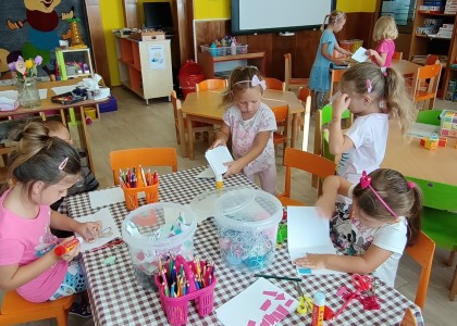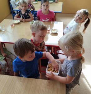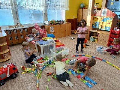 Tak jsme se po prázdninách opět shledali. První den bylo ve školičce plno radosti,ale i nějaké slzičky našich nováčků. Štěpánka přivítala děti plnou krabičkou výborného lineckého cukroví. A Štěpánek obdaroval děti perníkovými srdíčky. Štěpánko a Štěpánku moc děkujeme. A jak můžete vidět podle fotek, slzičky brzy vystřídala veselá očička, rozesmáté pusinky, navázaná nová přátelství a plno her, tvoření, povídání a také zpívání. Nakonec i nováčci zjistili, že je ve školce prima a do činností se zapojili. Sluníčko nám tento týden vesele svítí my si to užíváme na naší krásné zahrádce.Našim novým kamarádům - Dominičkovi, Karolínce, Špěpánkovi, Jarouškovi a Štěpánce přejeme, aby se jim mezi námi líbilo, byli spokojeni a každý den se do školky těšili.